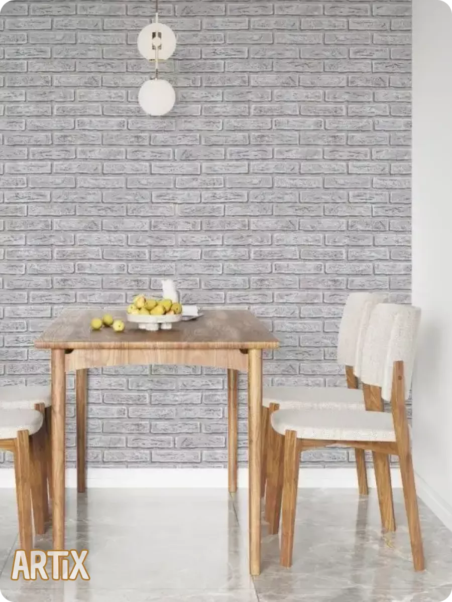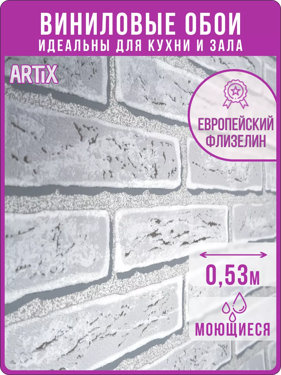 Обои флизелиновые полуметровые на кухню белорусского производителя очень подойдут вашему интерьеру. Современные и модные комнатные обои с объемным рисунком Зд 3d в виде декоративной отделки Кирпичная кладка «Кирпич» прекрасно подойдут как к классическому интерьеру, так и к стилю Лофт или Урбан. Обои белые, светло-серые подходят для гостиной, зала или спальни, а также детской комнаты или прихожей. Обои виниловые моющиеся подойдут для кабинета, кухни (как кухонные) или коридора, также для туалета и загородного дома. Интерьерные обои кирпичиком, кирпич — это абои, которые выполнены без использования ткани и бумаги. Это красивые моющиеся обои кирпичики для кухни, потому что они не впитывает воду, и являются водостойкими. Обои винил на флизелине клеят и на потолок, как потолочные. Они толще обоев на бумажной основе и скрывают шероховатости и неровности на стенах. Обои горячего тиснения плотные и делают поверхность стен более рельефной и смотрятся как фотообои. Они имитируют кирпичную кладку, которая создает ощущение настоящей стены из кирпича. Подойдут как обои компаньены. Виниловые обои с подбором рисунка с принтом “кирпич” можно также использовать под покраску в другой цвет. Широкие фактурные обои с имитацией кирпичной кладки имеют размер рулона (Ш х Д): 0.53 х 10,05 м.